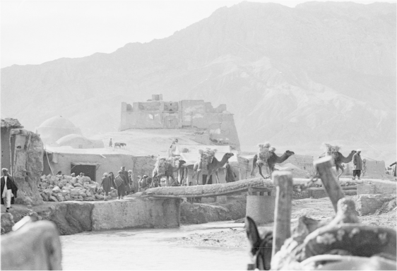Le même village: pont et caravane, villageois, mosquée, qala